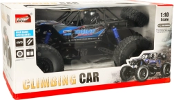 Duży zdalnie sterowany samochód terenowy w skali 1:10 z napędem 4×4, sprężynowym zawieszeniem i ogromnymi gumowymi kołami zapewniającymi pewną trakcję w trudnym terenie. Niezawodne sterowanie 2,4 GHz, zasięg do 60 m i jazda około 20 minut na jednym ładowaniu.