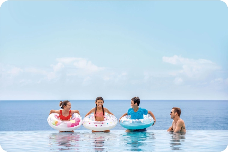 Przezroczyste korpus z wyrazistymi, wielobarwnymi kwiatami zwiększa widoczność na wodzie i dodaje letnim aktywnościom świeżego wyglądu, który dzieci pokochają.