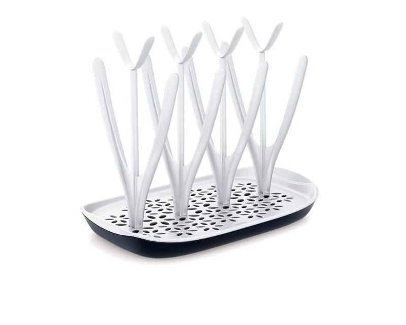 Uniwersalny design jest kompatybilny ze wszystkimi standardowymi rozmiarami butelek do 330 ml. Stojak łatwo się składa i rozkłada do szybkiego czyszczenia. Wykonany z wysokiej jakości polipropylenu, który jest bez BPA i nie zawiera ftalanów, aby suszenie było bezpieczne dla całej rodziny.