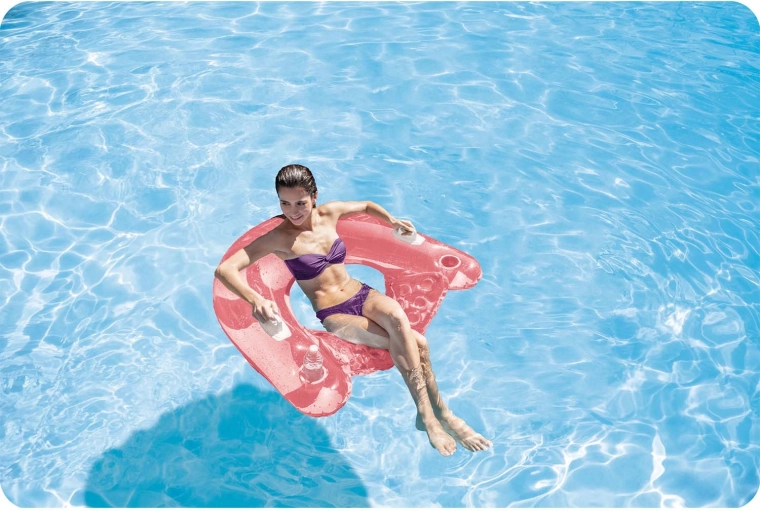 Ergonomicznie ukształtowany fotel z bąbelkowym siedziskiem przyjemnie unosi i podpiera plecy, dzięki czemu odpoczniesz bez ucisku nawet podczas dłuższego leżenia na wodzie.