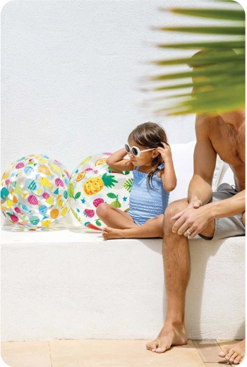 Przezroczyste panele z wielobarwnym nadrukiem przyciągną uwagę dzieci i dorosłych, piłka jest dobrze widoczna w wodzie, a jej lekka konstrukcja ułatwia rzucanie, łapanie i odbijanie. W zestawie znajduje się łata do szybkiej naprawy, więc zabawa może trwać nawet po drobnym uszkodzeniu.
