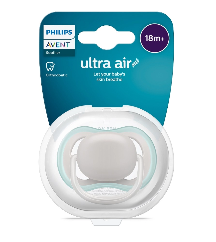 Philips Avent Ultra Air to smoczek zaprojektowany dla komfortu i zdrowego rozwoju. Duże otwory powietrzne zapewniają lepszą cyrkulację i pomagają utrzymać wrażliwą skórę dziecka bardziej suchą. Miękki, teksturowany i wyjątkowo wytrzymały silikonowy smoczek respektuje naturalny kształt podniebienia, zębów i dziąseł, dlatego sprawdza się także w okresie ząbkowania.