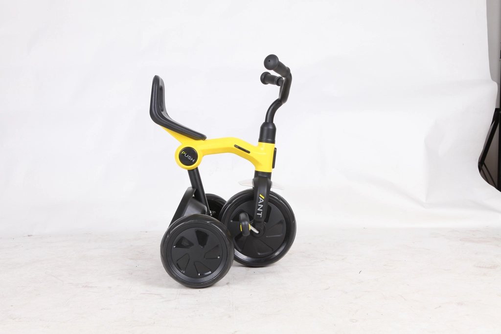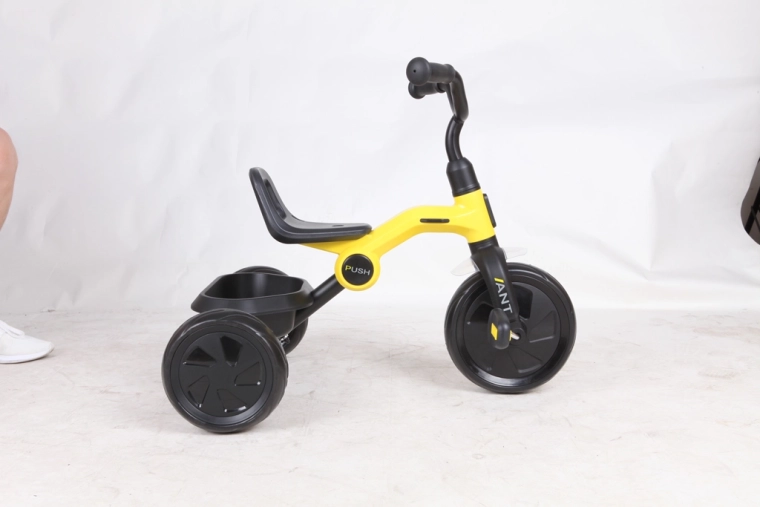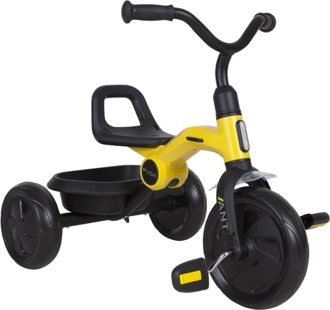 Lekki i wytrzymały trójkołowy rowerek Qplay Ant w stylowym żółtym kolorze jest idealny dla dzieci od 2 do 6 lat. Oferuje solidną metalową konstrukcję, regulowane siedzisko rosnące wraz z dzieckiem, bezobsługowe koła EVA odporne na przebicia oraz kompaktową składaną konstrukcję z uchwytem do łatwego przenoszenia. O bezpieczeństwo dba pas bezpieczeństwa, a praktyczny tylny koszyczek pomieści zabawki na drogę.