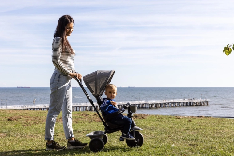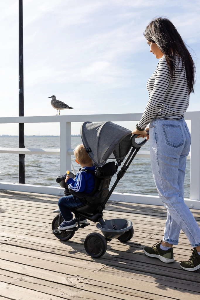 Trójkołowy rowerek Qplay Cosy 4 w 1 został zaprojektowany do bezpiecznych i komfortowych przejażdżek od maluchów po przedszkolaki. Dzięki sprytnym rozwiązaniom – regulowanej na wysokość rączce dla rodzica, 5‑punktowym pasom, składanemu środkowemu podnóżkowi oraz kołom z EVA – zapewnia płynną jazdę po chodnikach i parkowych alejkach, a dziecko pozostaje bezpieczne i wygodne pod daszkiem z ochroną UPF30.