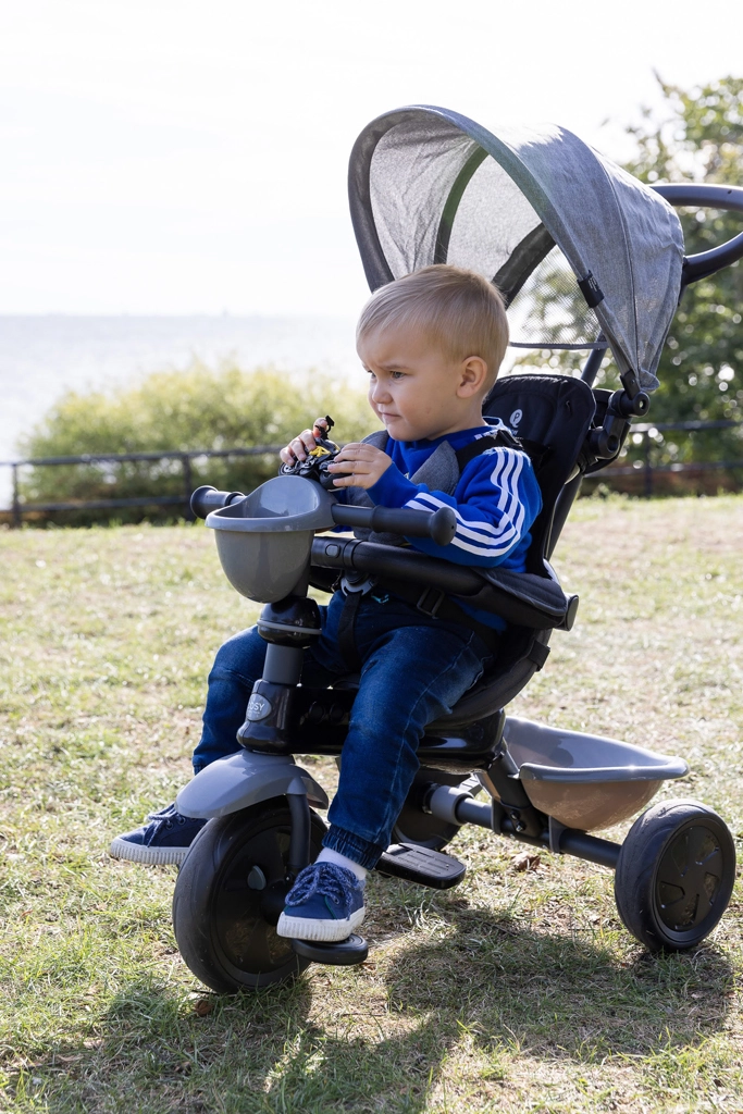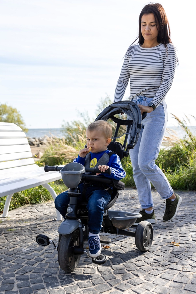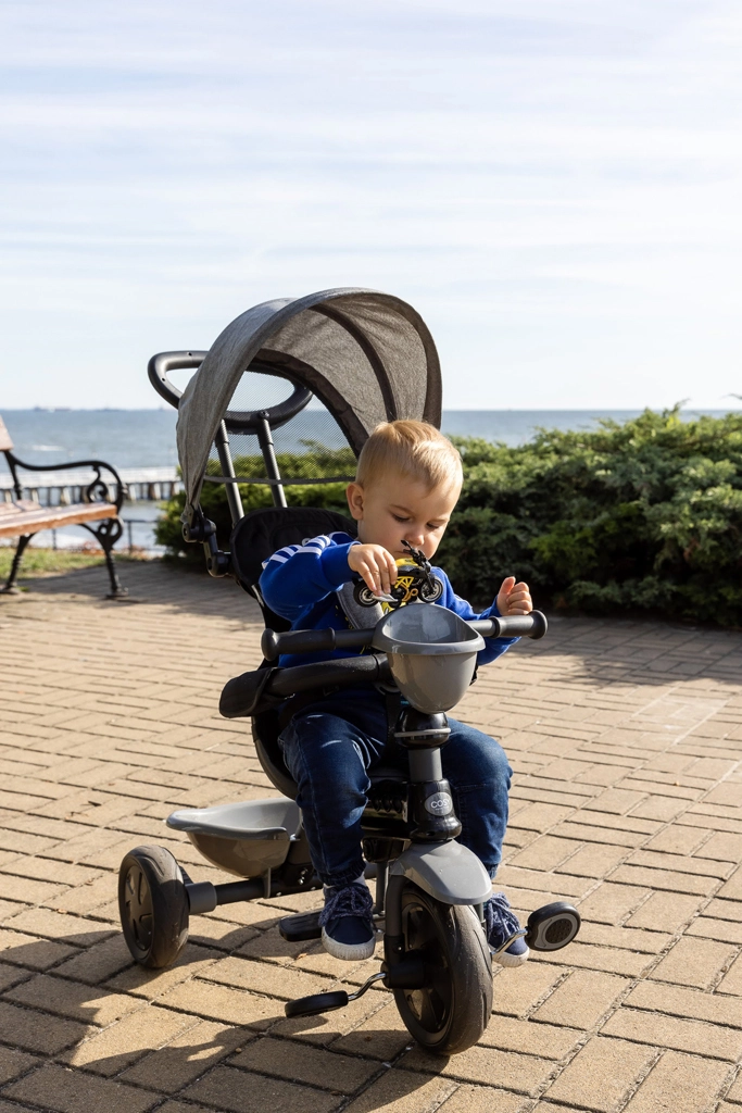 Uniwersalny dziecięcy rowerek trójkołowy Qplay Cosy 4 w 1 rośnie razem z dzieckiem od 10 do 72 miesięcy. Oferuje sterowanie przez rodzica, wygodne 5‑punktowe pasy, regulowany uchwyt, koła EVA pochłaniające wstrząsy oraz daszek przeciwsłoneczny z UPF30. Dzięki elementom odłączanym i regulowanym łatwo zmienia się z trybu wózka w samodzielny rowerek na pedały.