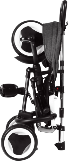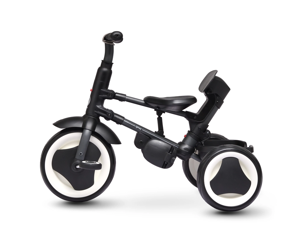 Praktyczny system składania bez użycia narzędzi umożliwia szybkie złożenie do kompaktowych rozmiarów i łatwy transport – po złożeniu trójkołówkę można prowadzić jak torbę podróżną. Koła antywibracyjne z twardej pianki tłumią nierówności, a funkcja wolnego koła i hamulce tylnych kół zwiększają bezpieczeństwo jazdy. Dwa koszyki oferują miejsce na drobiazgi podczas wycieczek.
