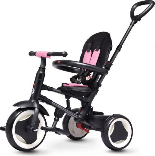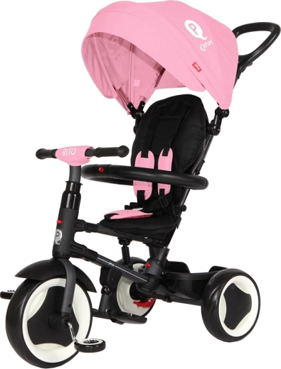 Trójkołowka QPLAY Rito Pink została zaprojektowana z myślą o maksymalnym komforcie dziecka i rodzica. Oferuje wysoko regulowany drążek prowadzący, dwie pozycje nachylenia oparcia oraz oddychające, miękkie siedzisko. Dzięki systemowi składania szybko przygotujesz ją do drogi i równie łatwo przechowasz – po złożeniu można ją wygodnie prowadzić jak torbę podróżną.