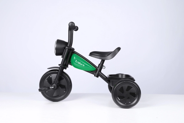 Trójkołowiec Qplay Triduro to idealny wybór dla małych odkrywców, którzy kochają styl i stabilność trzech kół. Motocyklowy wygląd ze stylizowanym „zbiornikiem”, wygodne siedzenie i wytrzymała konstrukcja czynią go świetnym towarzyszem spacerów i zabaw na placu. Dzięki szerokim kołom EVA zapewnia płynną i cichą jazdę po twardych nawierzchniach.