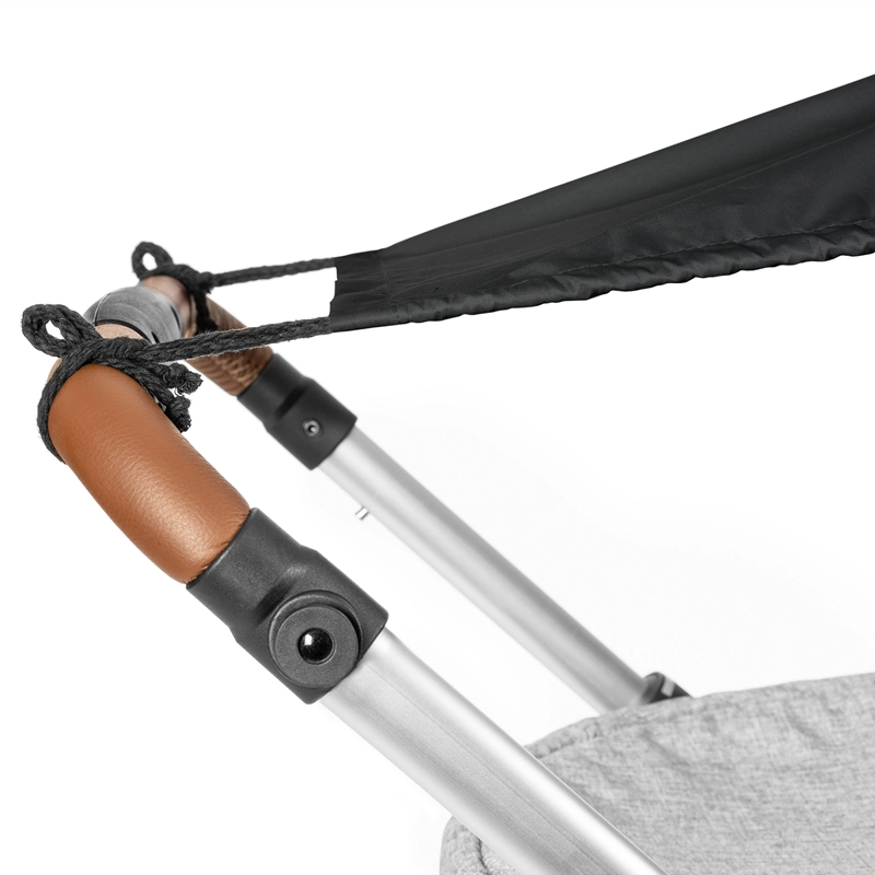 Dzięki sprytnemu sposobowi mocowania osłonę z łatwością naciągniesz na budkę i przymocujesz do rączki – gdy potrzebujesz dużego cienia w południe lub bocznej osłony rano i wieczorem. Elastyczna gumka i linki mocujące utrzymują osłonę stabilnie nawet przy wietrze czy na nierównym terenie. Gdy akurat nie jest potrzebna, po prostu zsuń ją jak roletkę, bez zdejmowania z wózka.