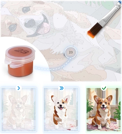 - Prosty proces w 3 krokach: dopasuj farbę do numeru, maluj od większych powierzchni do detali, a potem ciesz się efektem końcowym.