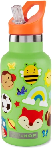 Ta stalowa butelka SKIP HOP została zaprojektowana na codzienne przygody dzieci. Wytrzymała konstrukcja utrzymuje napoje przyjemnie chłodne, a składana słomka umożliwia wygodne i higieniczne picie także w podróży. Dzięki praktycznemu uchwytowi dzieci łatwo ją chwycą lub przypną do plecaka.