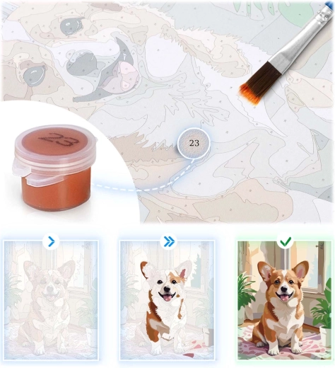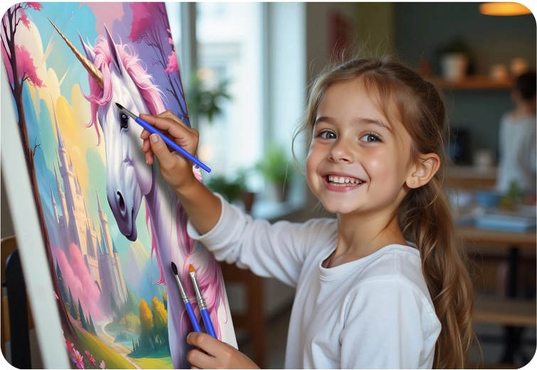 Zestaw jest odpowiedni dla dzieci i dorosłych, doskonale nadaje się do wspólnego tworzenia całej rodziny. Wysokiej jakości płótno naciągnięte na drewnianej ramie, intensywne farby akrylowe oraz trzy precyzyjne pędzle zapewnią czyste linie i subtelne detale. Po ukończeniu obraz łatwo zawiesisz za pomocą dołączonych akcesoriów.