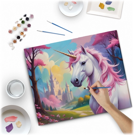 Stwórz własny, olśniewający obraz z motywem jednorożca i ciesz się relaksującym, kreatywnym doświadczeniem. Dzięki wstępnie nadrukowanym i ponumerowanym polom wystarczy przypisać kolor do numeru i stopniowo wypełniać kratki – efekt na Twoich oczach zmieni się w gotowe dzieło sztuki.