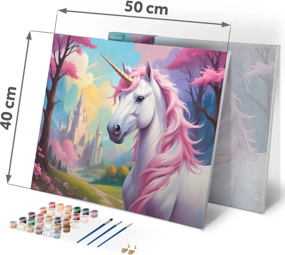 Odkryj magię tworzenia z zestawem malowania po numerach w rozmiarze 40 × 50 cm. Motyw jednorożca na wysokiej jakości płótnie na ramie jest gotowy do malowania. W zestawie znajdziesz 30 kryjących farb akrylowych, 3 pędzle gratis o różnych rozmiarach oraz haczyki do zawieszenia. Kolorowa podmalówka z delikatnym wzorem ułatwia malowanie nawet początkującym i gwarantuje piękny, nasycony efekt.