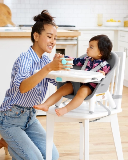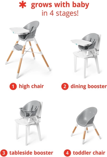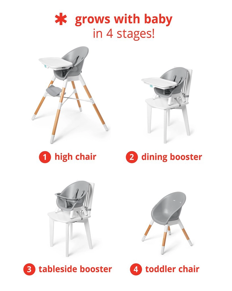 - 4w1 zastosowanie: wysokie krzesełko z tacą, wysokie krzesełko bez tacy, wysokie krzesło do stołu, dziecięce krzesełko/fotelik