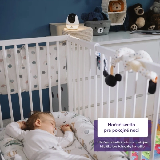 Uspokój dziecko własnym głosem, włącz jedną z 8 kołysanek i skorzystaj z przyjemnego światła nocnego dla niezakłóconego snu.