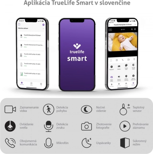 Niania działa przez bezpieczną aplikację TrueLife Smart (polskie tłumaczenie), z pięciowarstwową ochroną i szyfrowaniem AES. Zyskujesz nieograniczony zasięg z dowolnego miejsca na świecie, możliwość podłączenia do 16 kamer i nieograniczoną liczbę użytkowników. Oczywistością jest zapis zdjęć i filmów na karcie microSD. Elastyczny, giętki uchwyt pozwala przymocować nianię niemal wszędzie – np. do ramy łóżeczka.