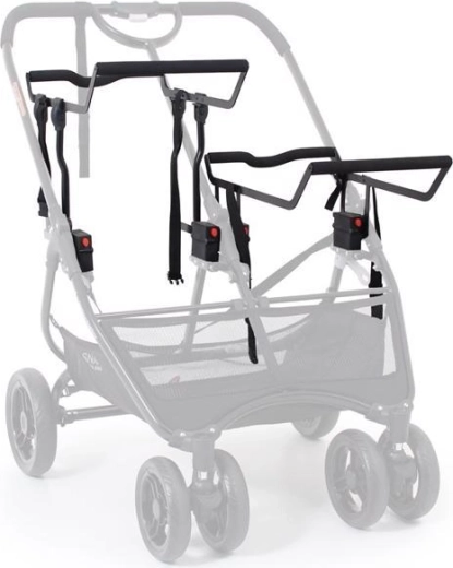 Stwórz idealny zestaw podróżny dla bliźniąt lub rodzeństwa z uniwersalnym adapterem A do wózka VALCO BABY Snap Duo Ultra. Główny adapter montuje się wyżej na stelażu i dzięki unikalnemu rozwiązaniu bezpiecznie utrzymuje dwa foteliki jednocześnie. Szybkie zakładanie i zwalnianie z obu stron wózka oszczędza czas i ułatwia codzienne przemieszczanie się.