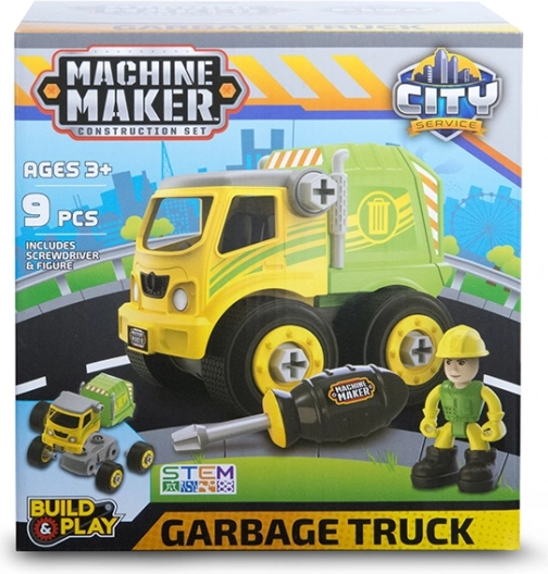 Seria CITY SERVICE od Machine Maker oferuje realistyczne pojazdy robocze, które dzieci samodzielnie złożą i ponownie rozłożą za pomocą bezpiecznego śrubokręta. Elementy można łączyć między modelami, tworząc oryginalne maszyny i nowe scenariusze zabawy.