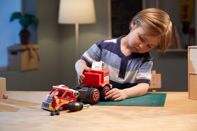 Czerwony wóz strażacki z linii CITY SERVICE zapewnia realistyczną zabawę. Z figurką strażaka i śrubokrętem dzieci łatwo złożą model i ruszą do akcji.