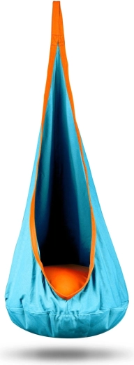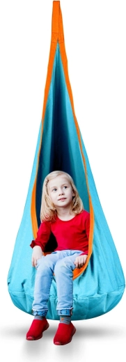 Stwórz dzieciom ich przytulne schronienie z tą turkusową wiszącą huśtawką typu kokon. Oferuje wygodne miejsce do relaksu, delikatne kołysanie oraz zabawę w pokoju, na tarasie czy w ogrodzie. W zestawie miękka poduszka, mocne szwy i wytrzymały, nadający się do prania materiał o udźwigu do 80 kg.