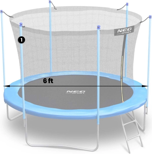 Wymienny górny słupek do trampoliny o średnicy 183 cm (6 ft) z wewnętrzną siatką ochronną w kolorze niebieskim. Idealny do szybkiej naprawy konstrukcji, zapewnia stabilność i bezpieczeństwo siatki oraz precyzyjne kompatybilne mocowanie do wybranych modeli NEO‑SPORT.