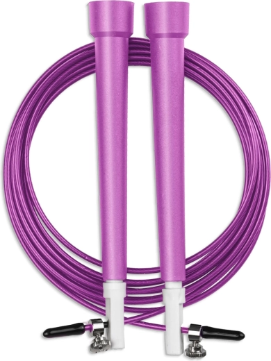 Cienka, pleciona stalowa linka z ochronną powłoką minimalizuje opór i umożliwia wysoką kadencję przeskoków – idealna do speed skippingu i treningu interwałowego.
