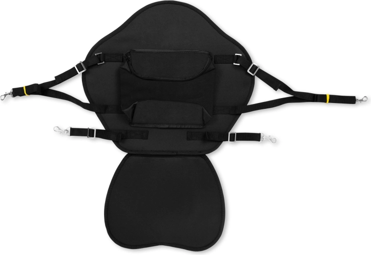 Montaż zajmuje chwilę: regulowane paski z metalowymi klamrami pewnie mocują siedzisko do D-ringów na pokładzie SUP. Materiały odporne na wodę szybko schną i łatwo się czyszczą, więc możesz skupić się na wrażeniach, a nie na konserwacji.