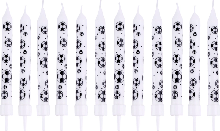 Te eleganckie świeczki na tort z motywem piłki nożnej nadadzą Twojej uroczystości odpowiedni sportowy charakter. Dzięki dołączonym uchwytom ich umieszczenie na torcie lub deserach jest szybkie, stabilne i bezpieczne. Wysokość 8 cm zapewnia dobrą widoczność i efektowny wygląd na każdych urodzinach.