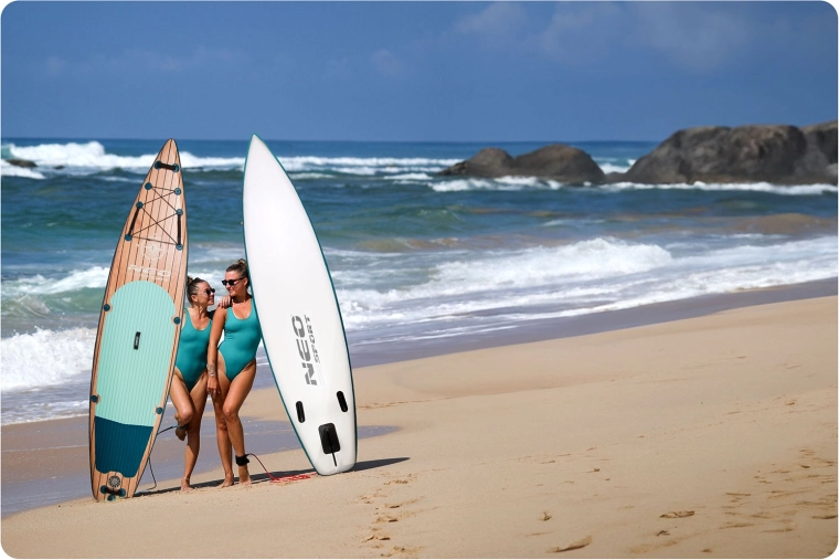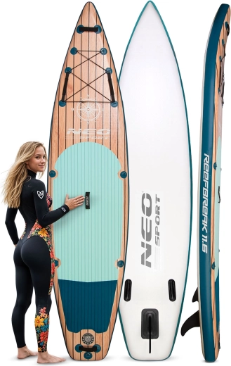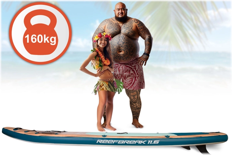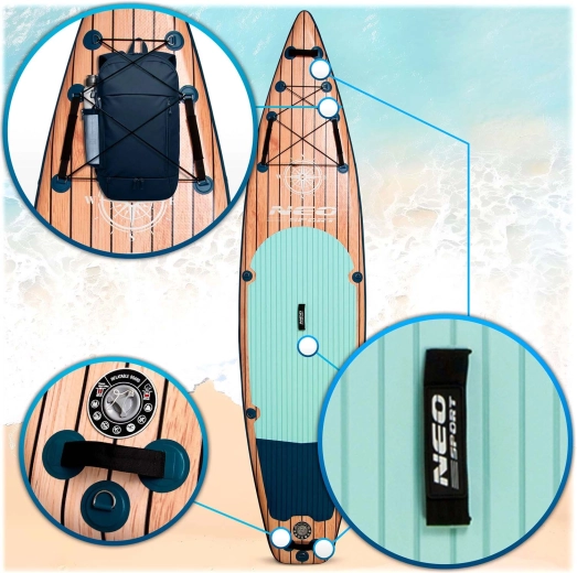 Odkryj stabilny i wytrzymały nadmuchiwany paddleboard Reefbreak od Neo‑Sport o wymiarach 350 × 81 × 15 cm. Dzięki technologii Drop Stitch Light i trójwarstwowej konstrukcji PVC oferuje doskonałą sztywność, niską masę oraz udźwig do 160 kg. W zestawie znajdziesz kompletny pakiet akcesoriów – regulowane aluminiowe wiosło, ręczną pompkę, siedzisko z oparciem i kieszenią, zabezpieczający leash, zdejmowany statecznik, plecak i zestaw naprawczy. Antypoślizgowa mata EVA, 5 praktycznych uchwytów oraz przedni system bungee gwarantują wygodę i bezpieczeństwo na spokojnej wodzie i mniejszych falach.