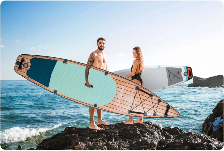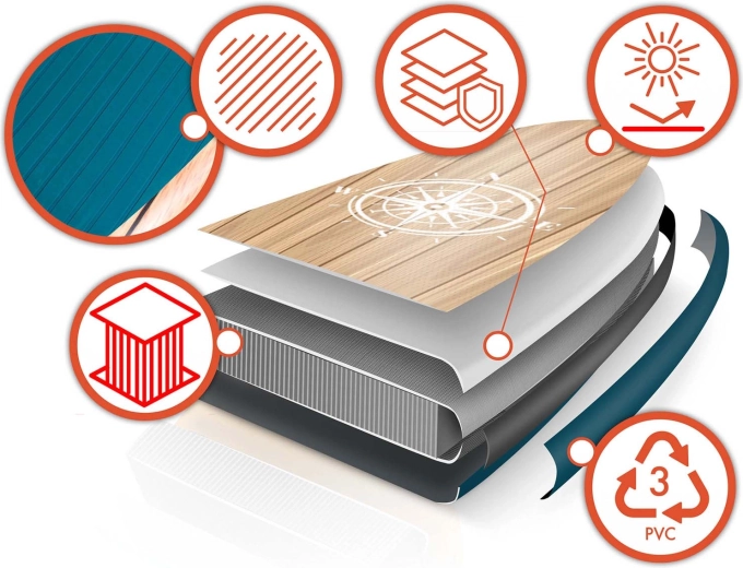 Podwójna tkanina Drop Stitch, trójwarstwowe PVC oraz wzmocnione szwy zapewniają doskonałą sztywność, odporność i niską masę. Idealny na dłuższe wycieczki i codzienne użytkowanie.