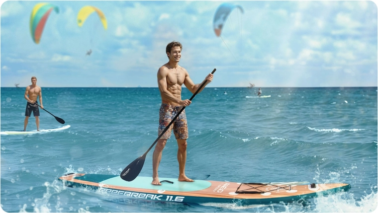 - Gotowy do pływania: kompletny zestaw akcesoriów w cenie – napompuj, zamocuj statecznik i ruszaj.