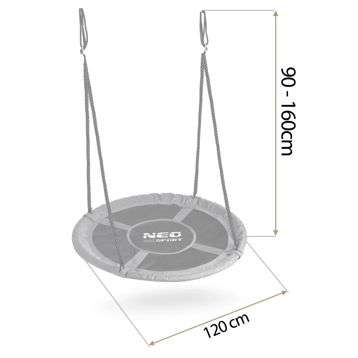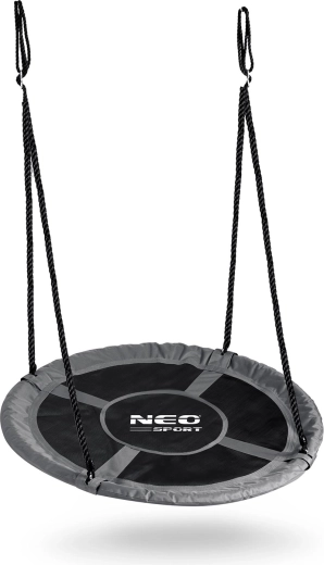 Ciesz się zabawą na świeżym powietrzu z przestronną huśtawką typu bocianie gniazdo o średnicy 120 cm od NEO-SPORT. Oferuje wygodne siedzisko, wodoodporny i łatwy w czyszczeniu materiał Oxford 600D, solidną stalową konstrukcję z miękką piankową osłoną oraz wytrzymałe, regulowane liny dla bezpiecznego bujania do 150 kg.