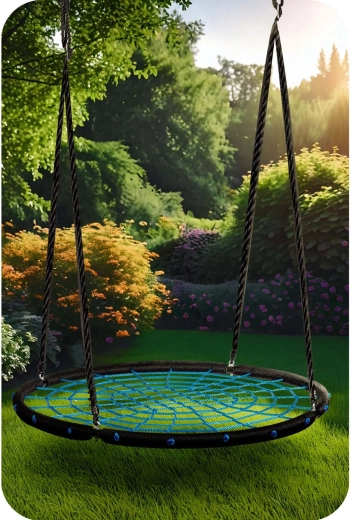 Duże bocianie gniazdo 120 cm zapewnia stabilne i bezpieczne bujanie dzięki stalowej konstrukcji z ochronnym oplocie PE oraz gęsto plecionej siatce typu „pajęcza sieć”. Szerokie siedzisko jest wygodne zarówno w pozycji siedzącej, jak i leżącej, a po deszczu świetnie odprowadza wodę, dzięki czemu huśtawka szybko wysycha.