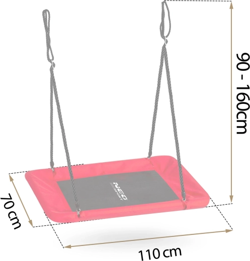 Huśtawka gniazdo NEO-SPORT Swingo łączy wygodę, bezpieczeństwo i trwałość. Przestronne siedzisko z materiału Oxford 600D jest wodoodporne i łatwe w utrzymaniu, a stalowa konstrukcja z piankową osłoną PE zapewnia stabilność i przyjemny w dotyku wykończenie. Szeroka powierzchnia 110 × 70 cm oferuje dużo miejsca na relaks i bujanie.