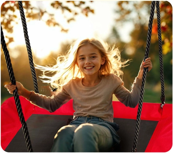 Dopasuj długość lin do 160 cm i ustaw idealną wysokość. Huśtawka rośnie razem z dziećmi i wytrzymuje do 150 kg.