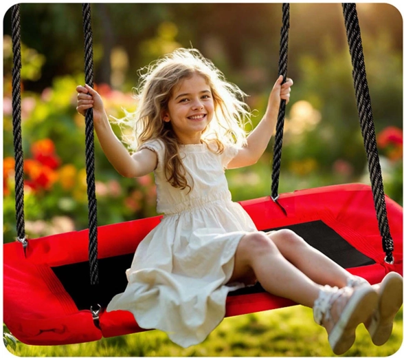 Wytrzymała tkanina Oxford 600D opiera się deszczowi i codziennemu użytkowaniu. Wystarczy przetrzeć powierzchnię, a huśtawka znów jest gotowa do zabawy.