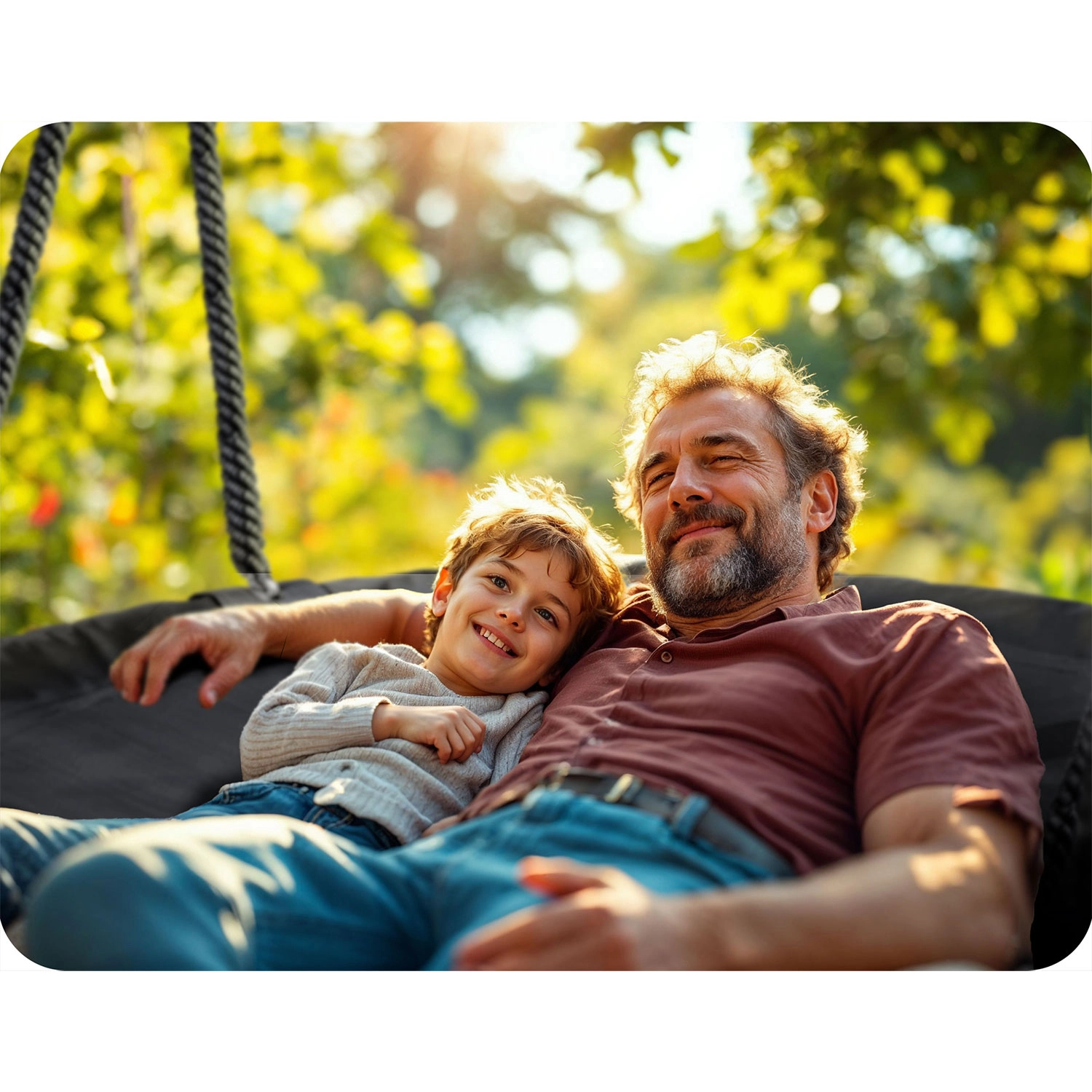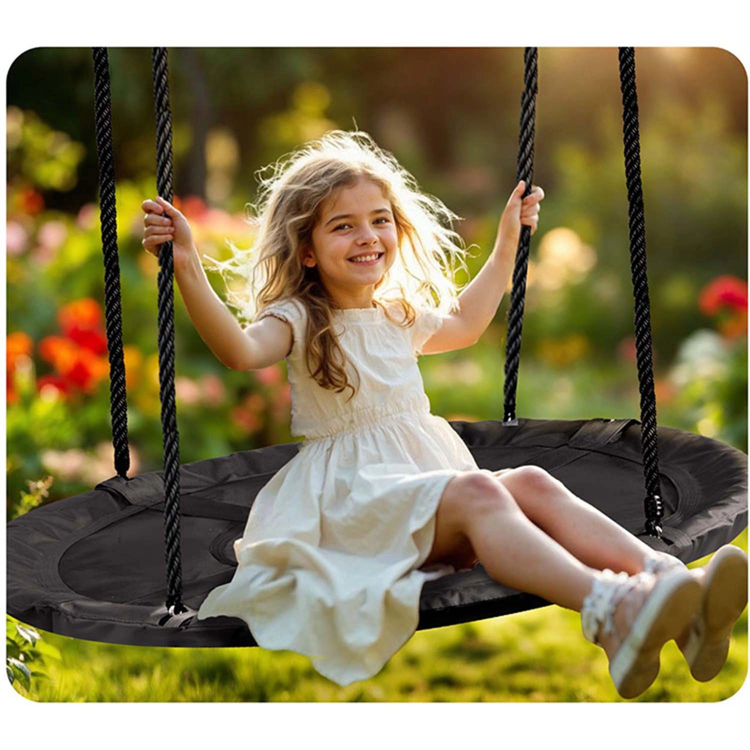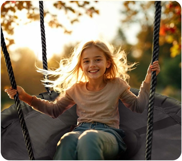 Dzięki regulowanym linom zawieszenia o maksymalnej długości 160 cm z łatwością dopasujesz wysokość huśtawki do wzrostu dziecka i miejsca montażu. Szeroka powierzchnia siedziska jest wygodna do siedzenia i leżenia, więc bujanie spodoba się zarówno młodszym, jak i starszym dzieciom – a także dorosłym.