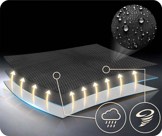 Powierzchnia siedziska z wytrzymałego poliestru Oxford 600D odpycha wodę i zabrudzenia. Pielęgnacja jest szybka – wystarczy przetrzeć, a huśtawka znów wygląda jak nowa.