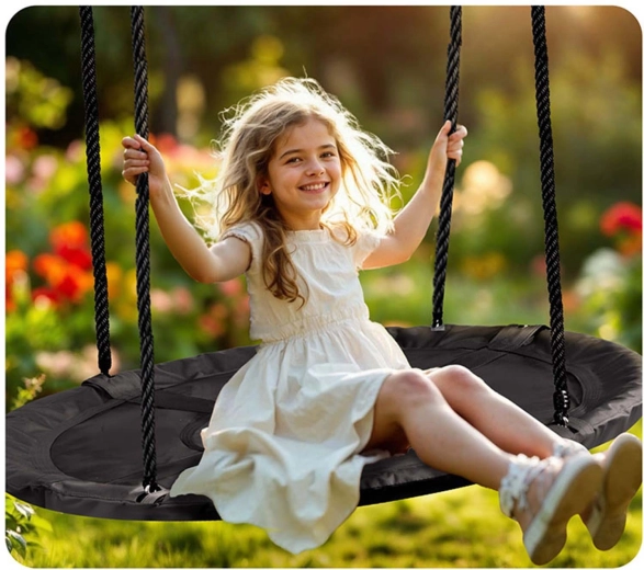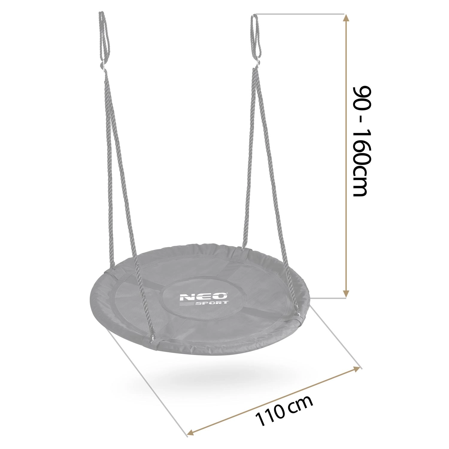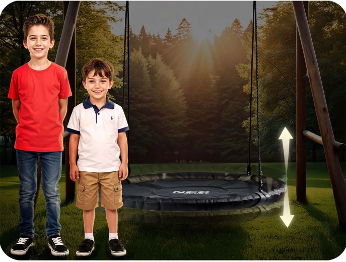 Okrągła huśtawka NEO-SPORT o średnicy 110 cm to idealny wybór dla rodzin, które chcą połączyć aktywny wypoczynek z bezpieczną zabawą. Solidna stalowa rama z miękką piankową osłoną PE i wielokrotnym przeszyciem zapewnia stabilność i trwałość, a siedzisko z wytrzymałego poliestru Oxford 600D jest wodoodporne i łatwe w czyszczeniu.