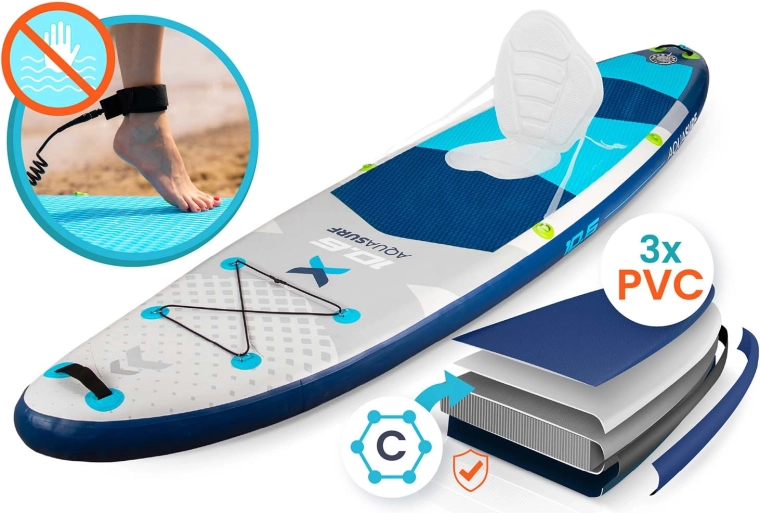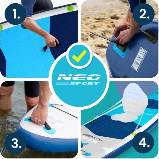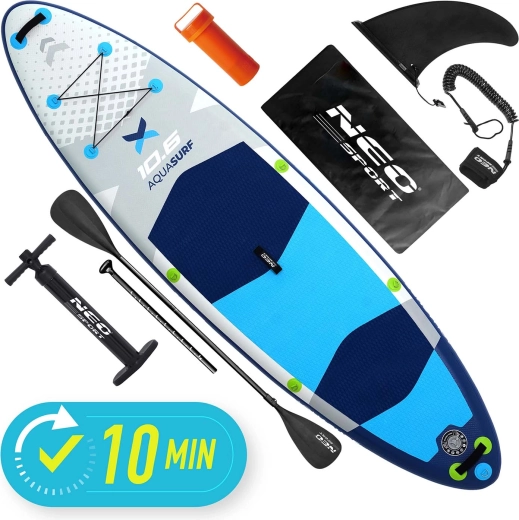 Ciesz się latem w pełni z nadmuchiwaną deską SUP AQUASURF 10’6 – stabilną, wytrzymałą i lekką deską na spokojne wody i mniejsze fale. W kompletnym zestawie znajdziesz wszystko do natychmiastowego wypłynięcia: regulowane aluminiowe wiosło, dwutłokową pompkę z manometrem, bezpieczny leash, zdejmowaną płetwę, zestaw naprawczy oraz plecak transportowy. Antypoślizgowa mata EVA, przedni system bungee na ekwipunek oraz konstrukcja z 3‑warstwowego PVC Drop Stitch Light zapewniają pewny krok, łatwe manewrowanie i długą żywotność.