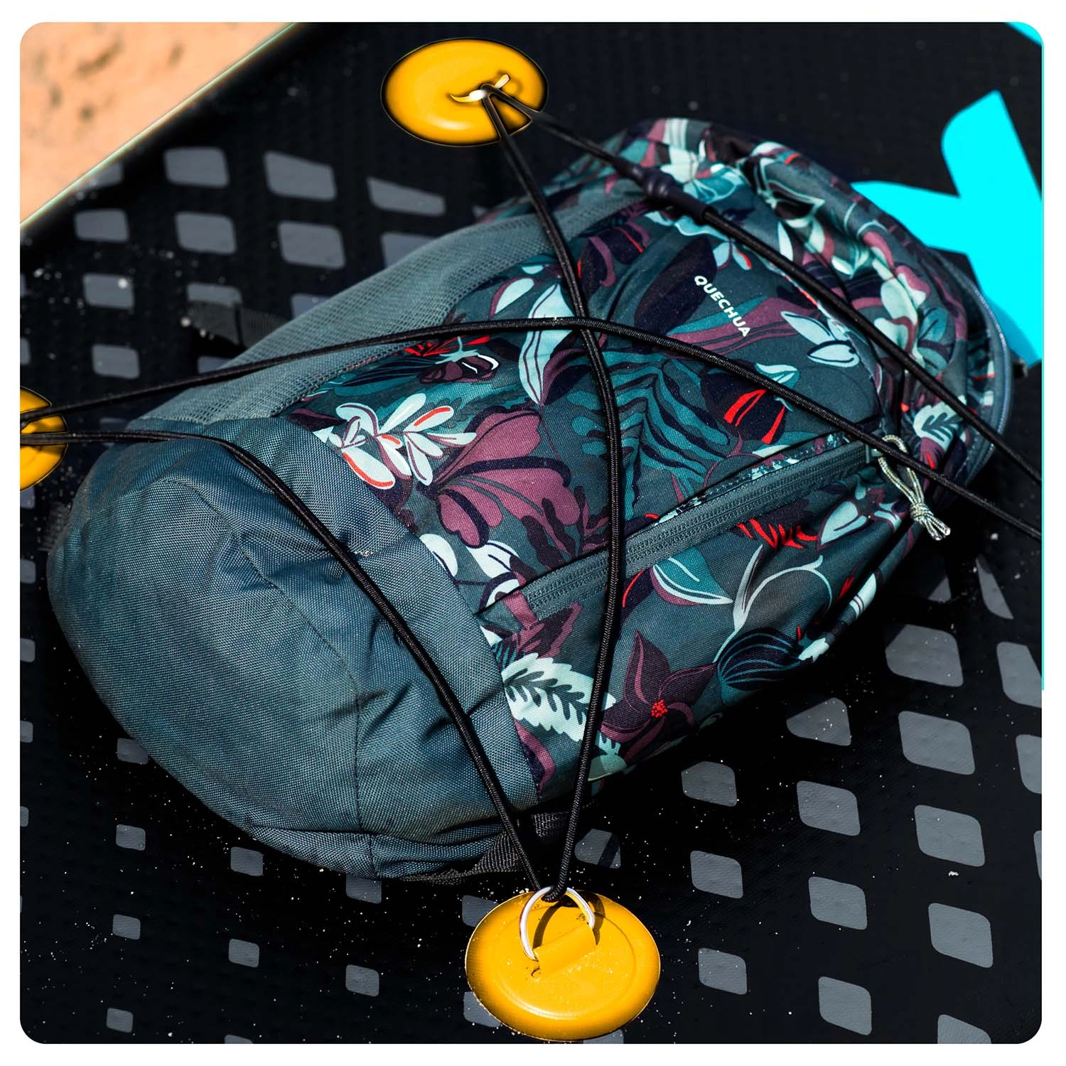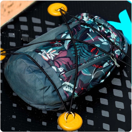 Przednie elastyczne linki i liczne D-ringi utrzymają plecak, kurtkę i butelkę w zasięgu ręki. Podróżuj lekko i bezpiecznie – wszystko pozostanie na swoim miejscu.