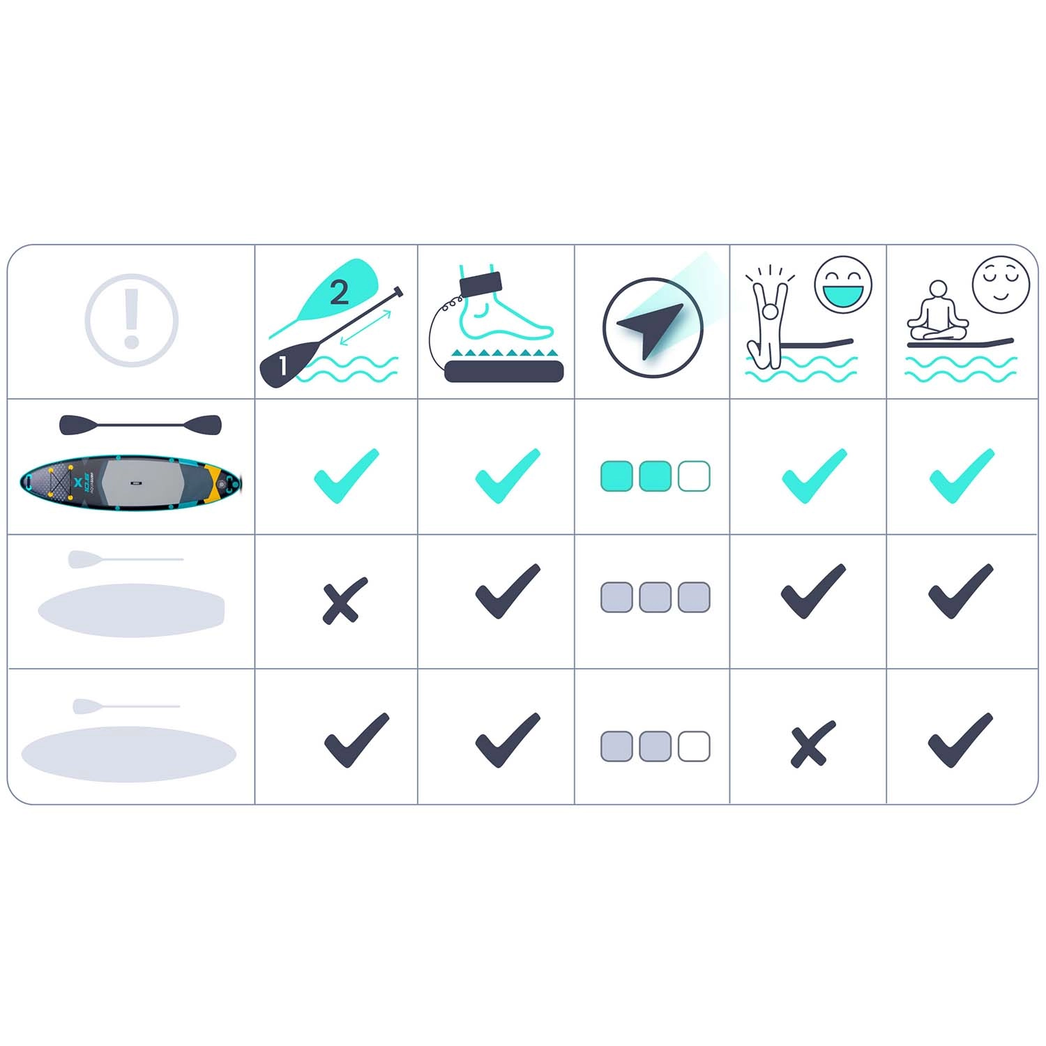 Szeroki pokład, antypoślizgowa mata EVA i elastyczne linki bungee zapewniają bezpieczeństwo Tobie i Twojemu ekwipunkowi. Idealny dla początkujących, rodzin oraz do relaksu na wodzie.
