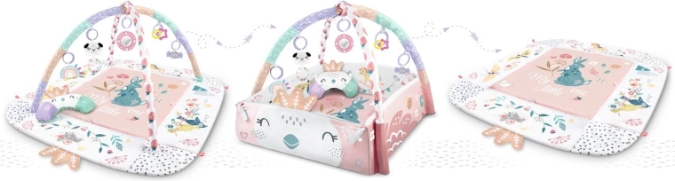 Podnoszone boki i odpinane pałąki pozwalają szybko zmieniać tryb zabawy w zależności od wieku i potrzeb dziecka. Idealna do leżenia, ćwiczenia na brzuszku oraz pierwszego siedzenia.