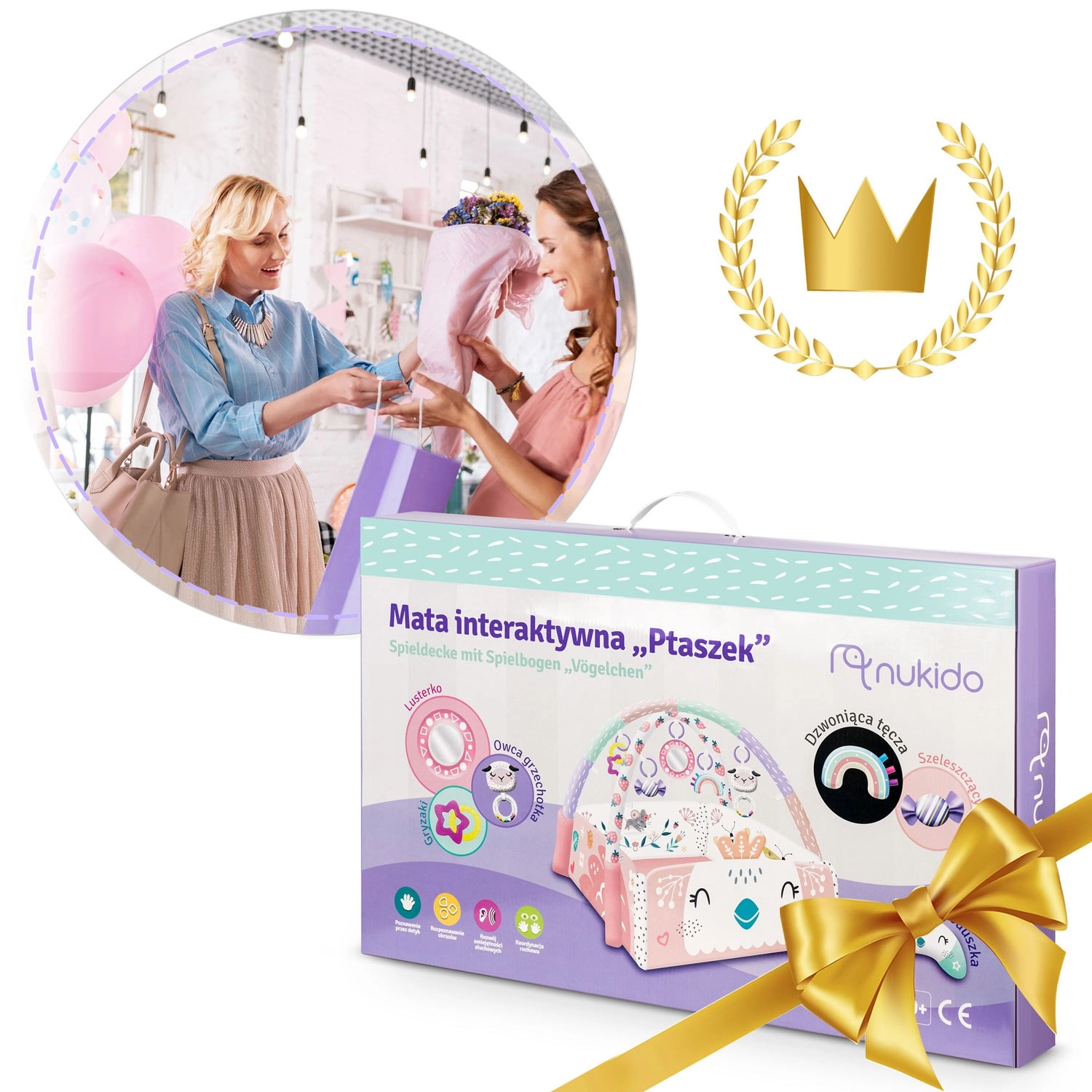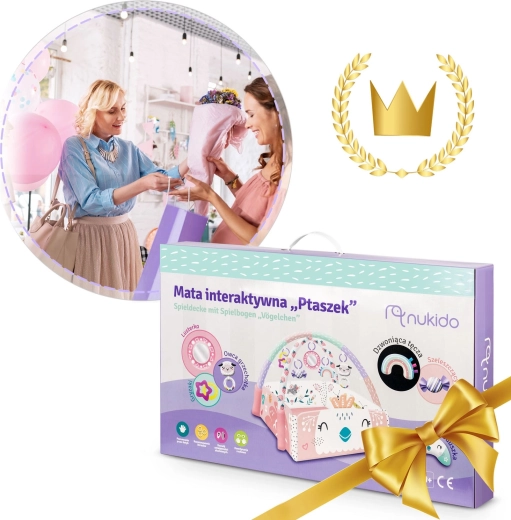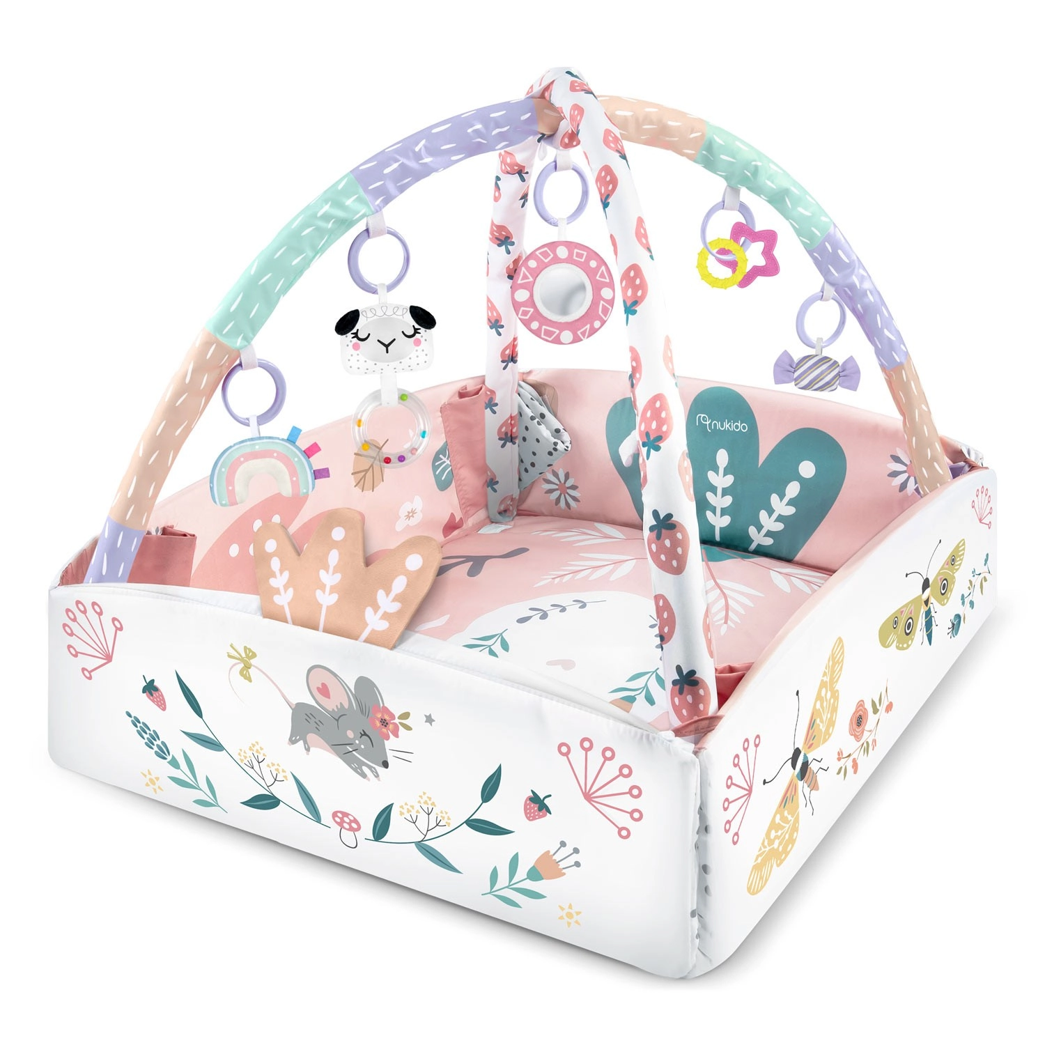 Odkryj uniwersalną matę do zabawy NUKIDO, która rośnie razem z Twoim dzieckiem. Matę można używać w 3 konfiguracjach – jako otwartą podkładkę, z podnoszonymi bokami dla bezpieczniejszego kącika zabaw oraz jako przytulną przestrzeń do pierwszego siedzenia i zabawy. 7 zawieszek (lusterko z nietłukącego się materiału, grzechotki, elementy szeleszczące i piszczące, gryzaki) stymuluje wzrok, słuch i dotyk oraz wspiera małą motorykę.