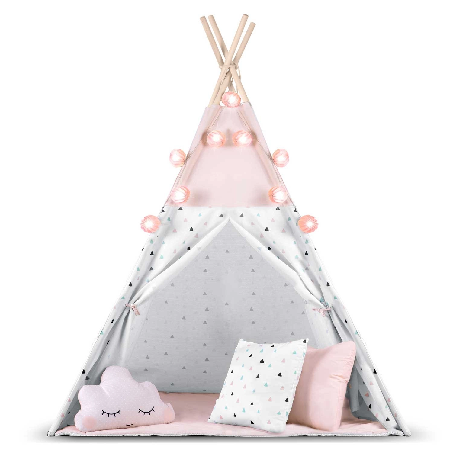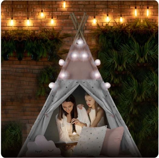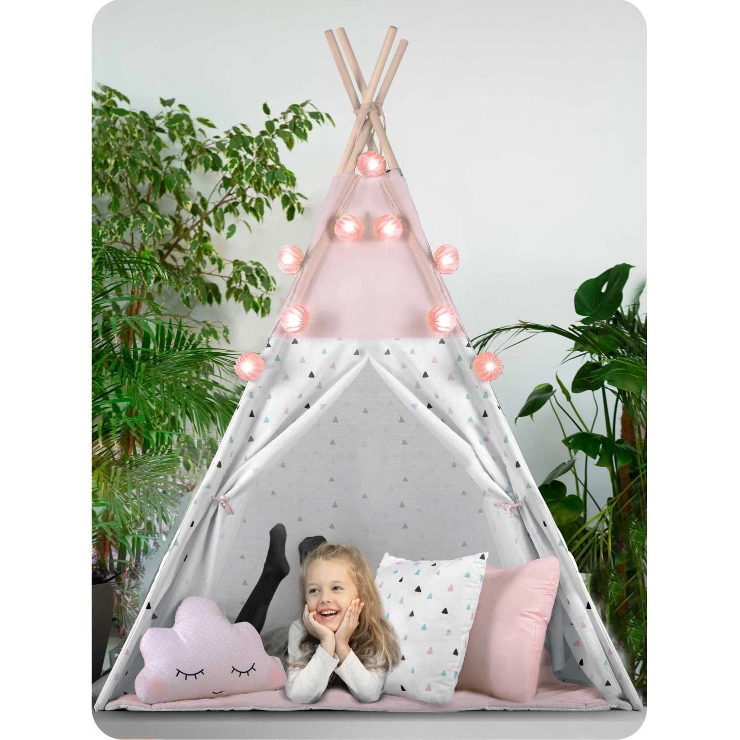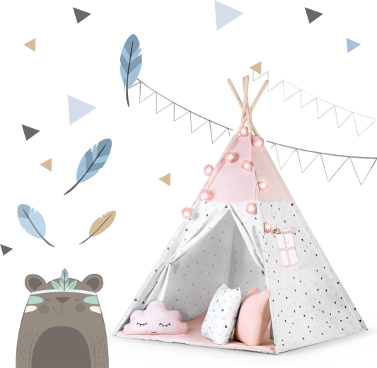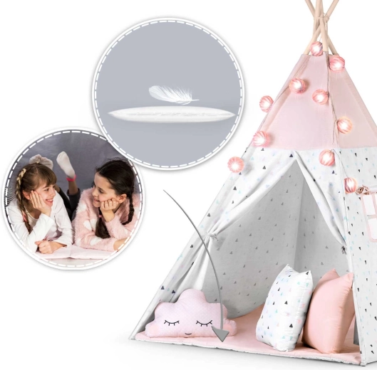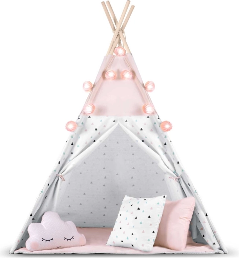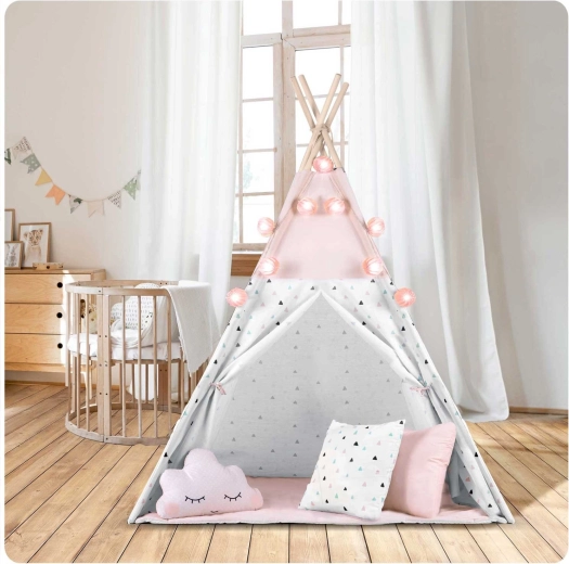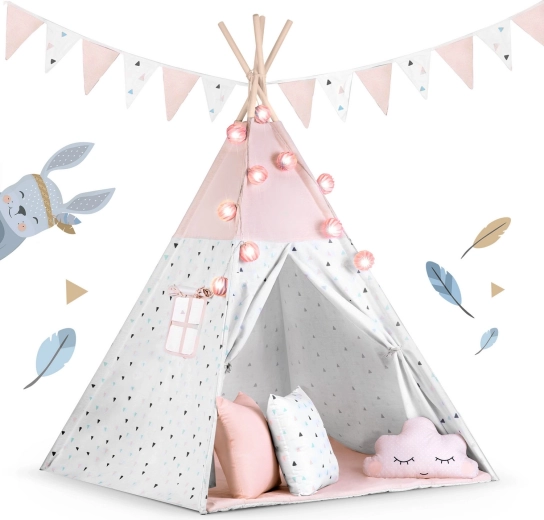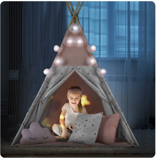 Dziecięce tipi z girlandą i światełkami NUKIDO – różowe