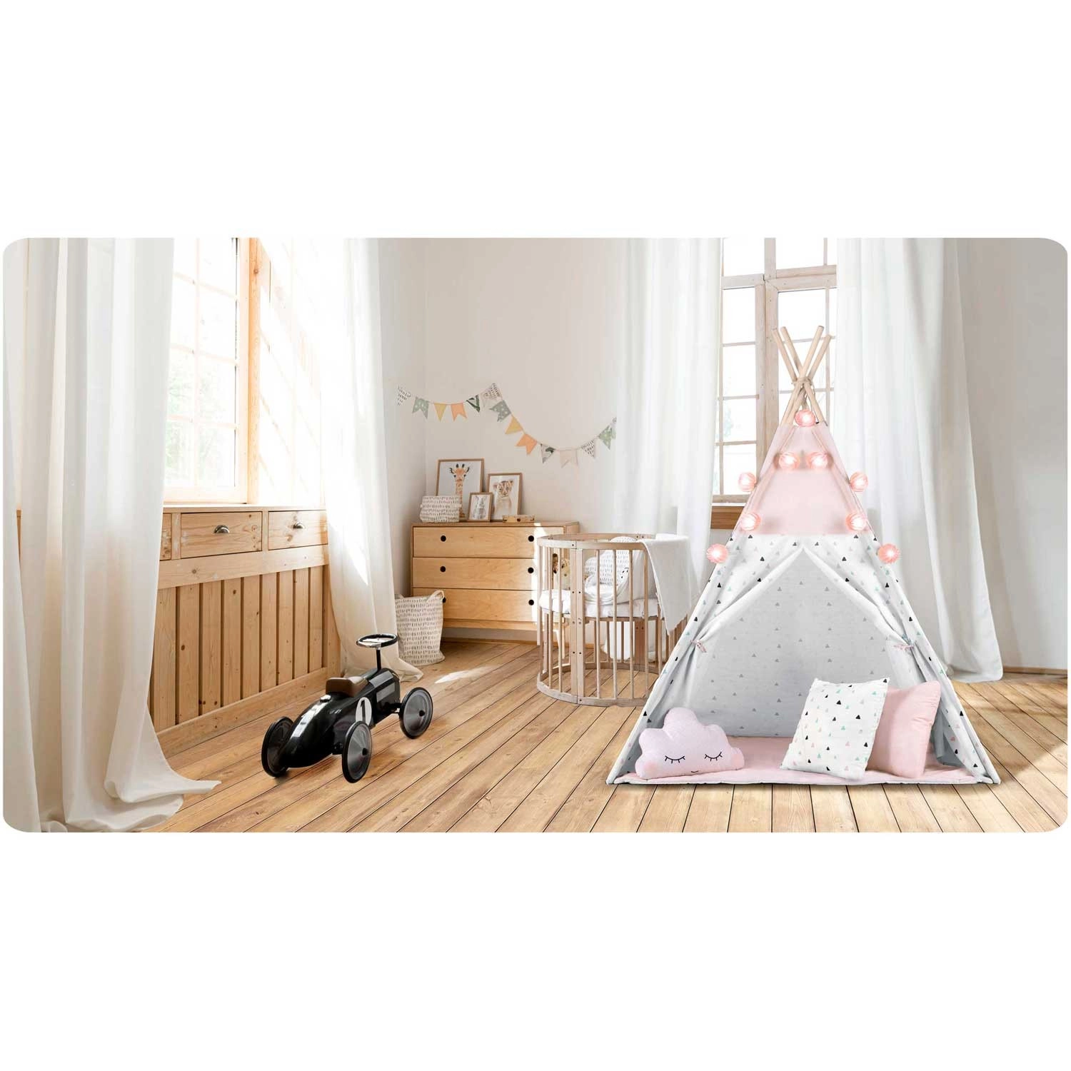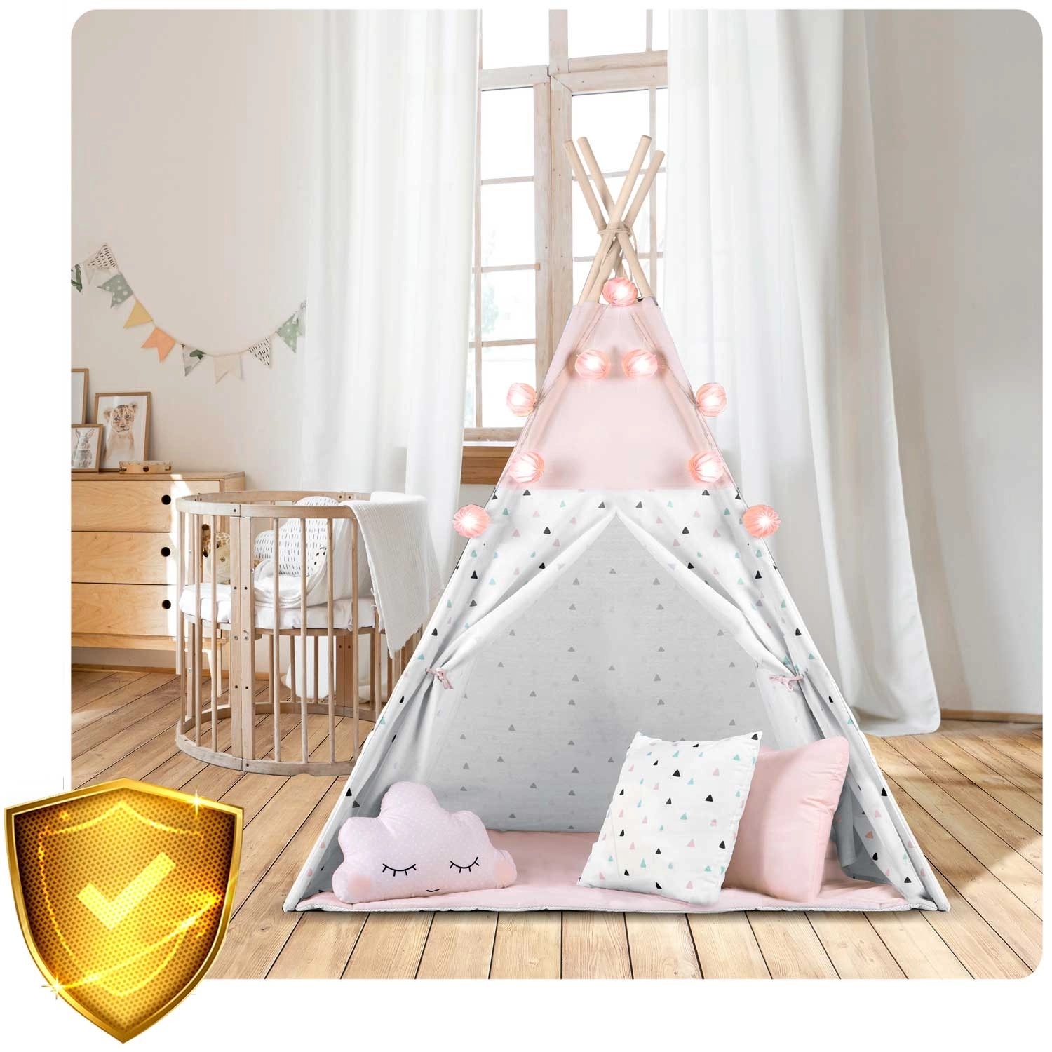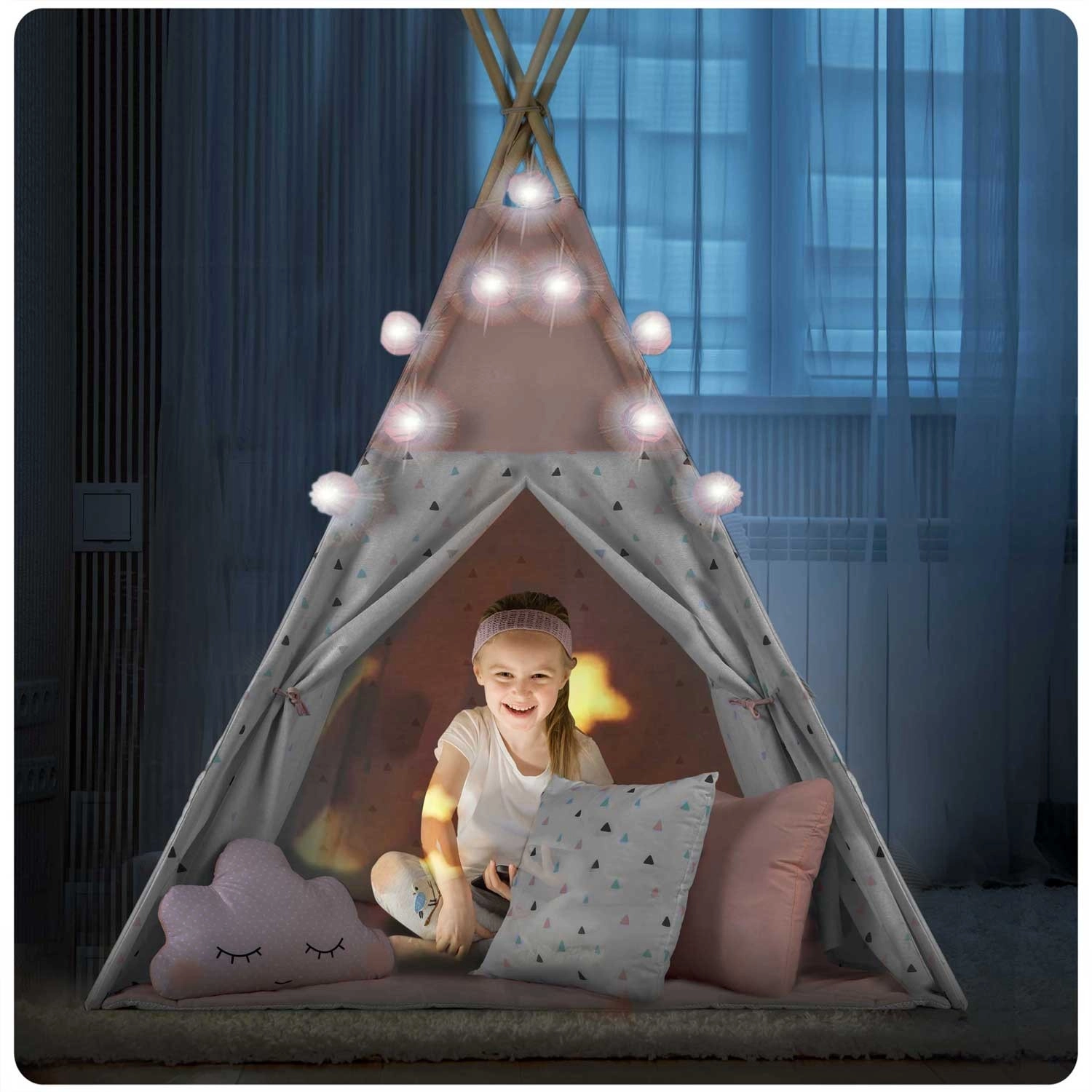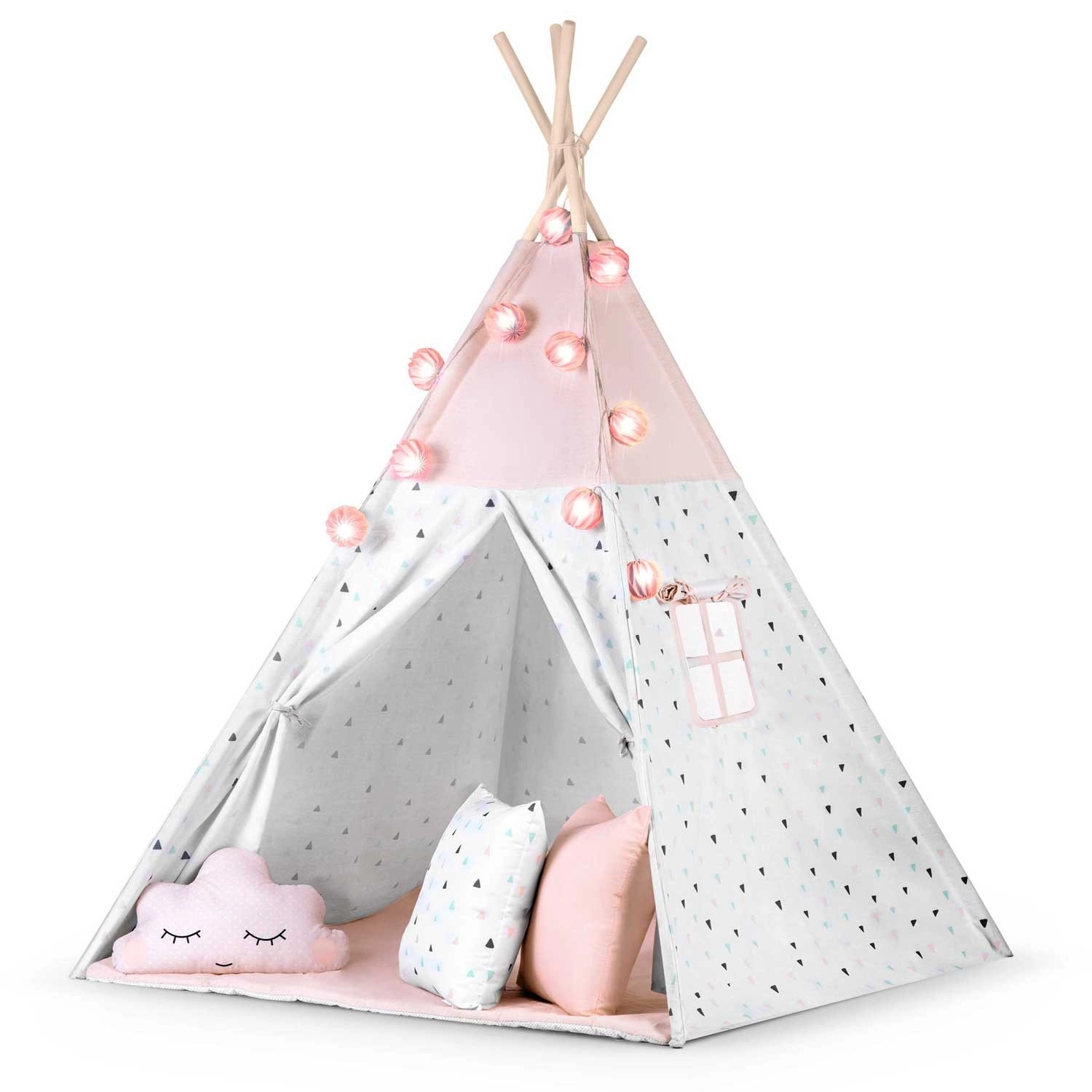 Dziecięce tipi z girlandą i światełkami NUKIDO – różowe