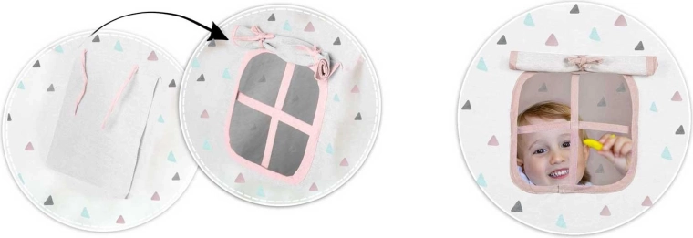 Otwierane okienko z możliwością związania oraz praktyczne wejście na troczki pobudzają wyobraźnię i ułatwiają nadzór rodziców. Więcej światła, powietrza i zabawy przy każdej aktywności.