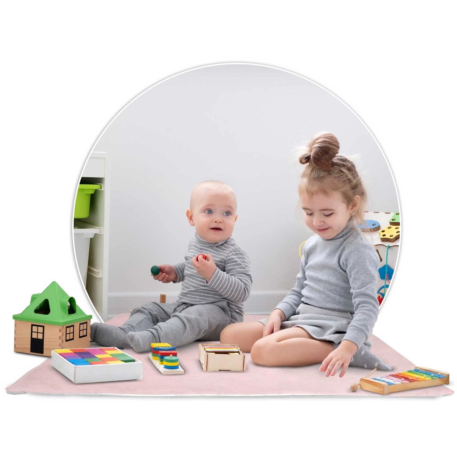 W zestawie znajduje się mata izolacyjna z antypoślizgowymi wypustkami, która chroni przed chłodem podłogi i zwiększa komfort podczas zabawy i czytania. Trzy mięciutkie poduszki oraz dekoracyjne światełka z girlandą tworzą przytulną atmosferę. Otwierane okienko z roletką i rozsuwane wejście wspierają pomysłową zabawę i naturalnie wpisują się w zasady Montessori.