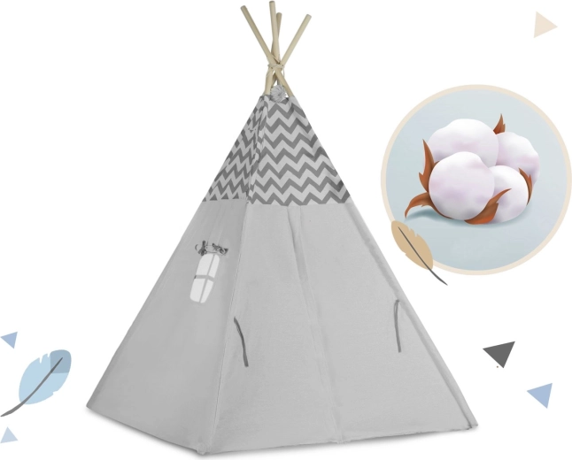 Szare dziecięce tipi Nukido w nowoczesnym wzorze chevron pięknie wpasuje się do każdego pokoju i kącika zabaw w stylu Montessori. Wysokiej jakości bawełna premium 175 g/m² jest przyjemna w dotyku i świetnie oddycha, a stabilna drewniana konstrukcja zapewnia bezpieczną zabawę każdego dnia. Dzięki macie izolacyjnej z wykończeniem antypoślizgowym i miękkiemu wypełnieniu kącik jest idealny do zabawy, czytania i popołudniowej drzemki.